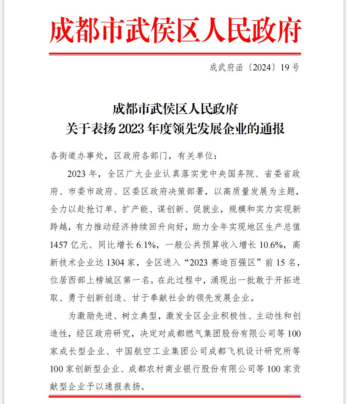 近日,成都市武侯區(qū)人民政府發(fā)布《關(guān)于表揚2023年度領(lǐng)先發(fā)展企業(yè)的通報》,文件表彰了武侯區(qū)一批敢于開拓進取、勇于創(chuàng)新創(chuàng)造、甘于奉獻社會的領(lǐng)先發(fā)展企業(yè),東方凱特瑞被授予“創(chuàng)新型100強企業(yè)”榮譽稱號,位列該榜第四十七位。