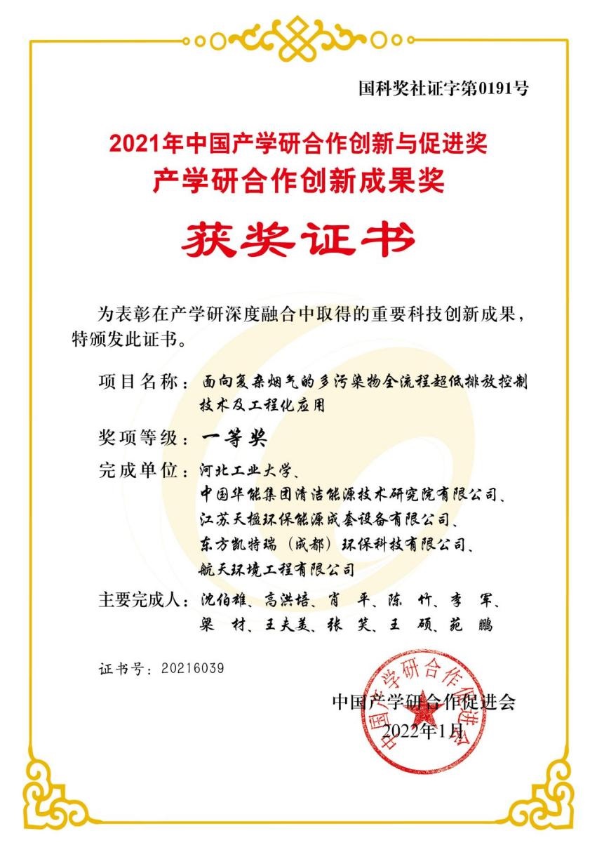 近日,東方凱特瑞參與由河北工業(yè)大學(xué)牽頭申報的《面向復(fù)雜煙氣的多污染物全流程超低排放控制及工程化應(yīng)用》項目被國家一級協(xié)會——中國產(chǎn)學(xué)研合作促進會評為“產(chǎn)學(xué)研合作創(chuàng)新成果一等獎”。