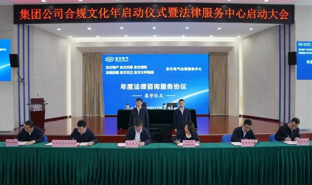 3月29日,集團(tuán)公司召開東方電氣法律服務(wù)中心啟動大會。會上集團(tuán)公司法務(wù)風(fēng)控部解讀了法律服務(wù)中心設(shè)立方案,法律服務(wù)中心宣講了法律服務(wù)中心運(yùn)行機(jī)制,舉行了首批年度法律咨詢服務(wù)協(xié)議簽約儀式。集團(tuán)公司黨組成員、副總經(jīng)理張繼烈出席會議并講話,集團(tuán)公司總法律顧問兼首席合規(guī)官王志文主持會議。