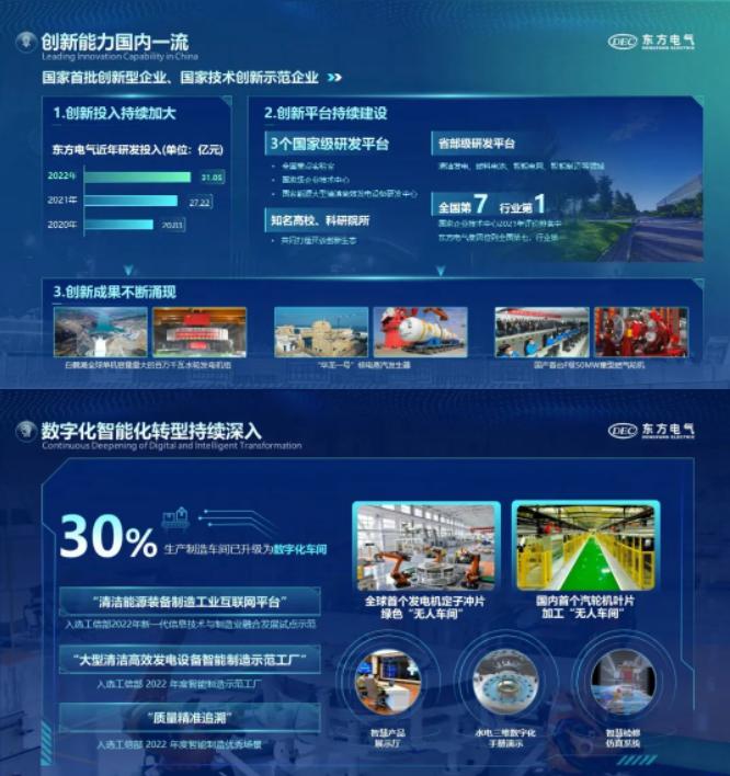 2022年,公司堅(jiān)持科技創(chuàng)新戰(zhàn)略引領(lǐng),制定發(fā)布中長(zhǎng)期科技創(chuàng)新規(guī)劃;強(qiáng)化創(chuàng)新平臺(tái)建設(shè),構(gòu)建領(lǐng)先的水電、氫能等產(chǎn)業(yè)創(chuàng)新聯(lián)合體?萍紕(chuàng)新成果突出,完成國(guó)內(nèi)首臺(tái)自主知識(shí)產(chǎn)權(quán)F級(jí)50MW重型燃?xì)廨啓C(jī)等一批科技創(chuàng)新成果。公司堅(jiān)持綠色轉(zhuǎn)型與數(shù)字化轉(zhuǎn)型協(xié)同發(fā)展,發(fā)布碳達(dá)峰碳中和行動(dòng)方案、數(shù)字化轉(zhuǎn)型行動(dòng)計(jì)劃,創(chuàng)新驅(qū)動(dòng)企業(yè)核心競(jìng)爭(zhēng)力不斷提升。
