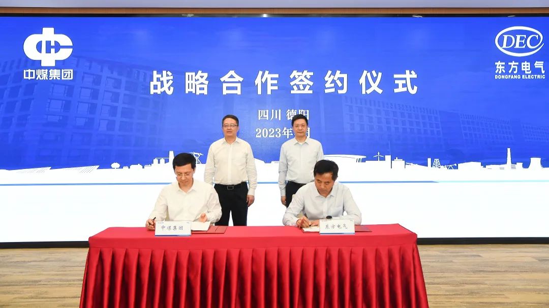 在東方電氣集團黨組書記、董事長俞培根,中煤集團黨委書記、董事長王樹東的見證下,東方電氣集團黨組成員、副總經(jīng)理孫國君,中煤集團黨委常委、副總經(jīng)理倪嘉宇分別代表雙方簽字。