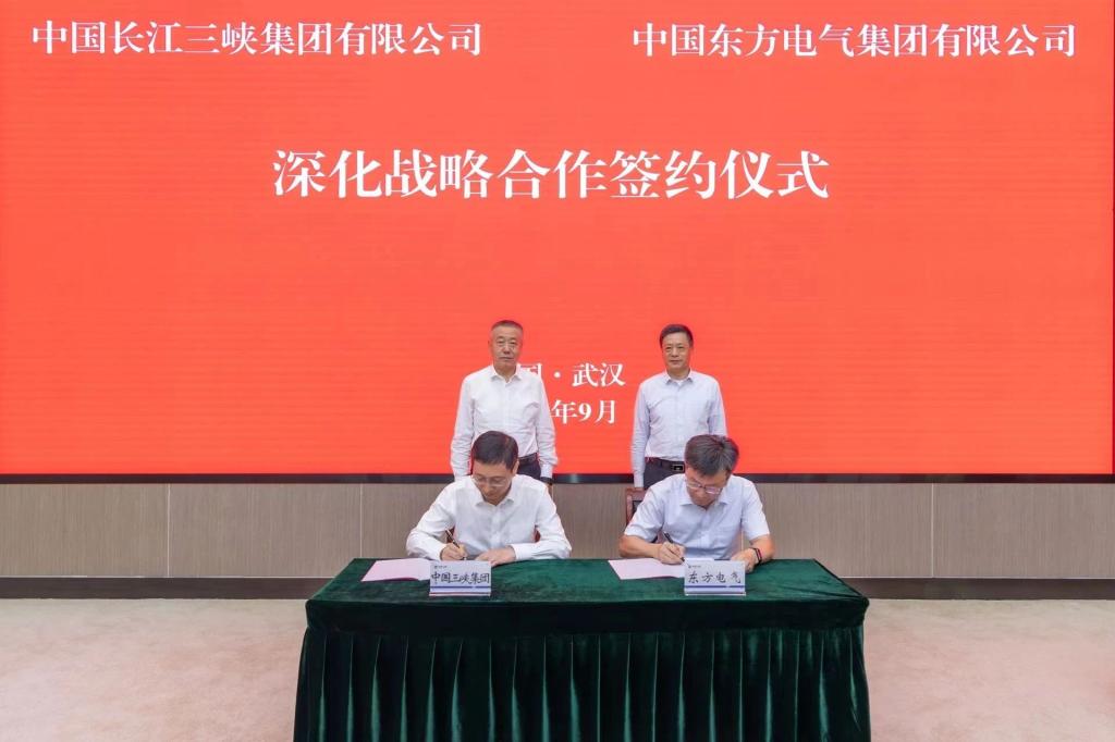 本網(wǎng)訊 9月13日,中國(guó)東方電氣集團(tuán)有限公司與中國(guó)長(zhǎng)江三峽集團(tuán)有限公司在武漢簽署深化戰(zhàn)略合作協(xié)議。