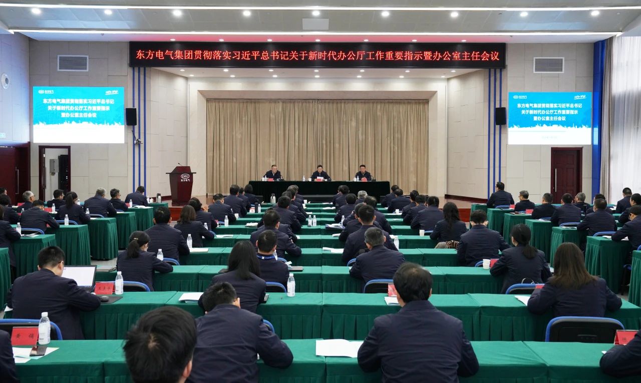 本網(wǎng)訊 為深入學(xué)習(xí)貫徹習(xí)近平總書(shū)記關(guān)于新時(shí)代辦公廳工作的重要指示精神,落實(shí)全國(guó)黨委和政府秘書(shū)長(zhǎng)會(huì)議要求,系統(tǒng)總結(jié)黨的十九大以來(lái)集團(tuán)公司辦公室系統(tǒng)工作,進(jìn)一步提高辦公室“三服務(wù)”工作能力和水平,12月15日,東方電氣集團(tuán)召開(kāi)貫徹落實(shí)習(xí)近平總書(shū)記關(guān)于新時(shí)代辦公廳工作重要指示暨辦公室主任會(huì)議。集團(tuán)公司黨組書(shū)記、董事長(zhǎng)俞培根,董事、黨組副書(shū)記宋致遠(yuǎn)出席會(huì)議,董事會(huì)秘書(shū)、總審計(jì)師馮勇主持會(huì)議。