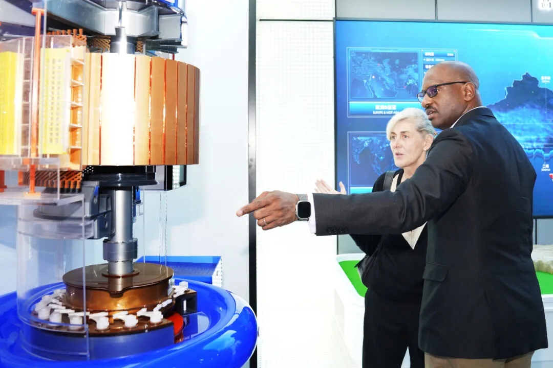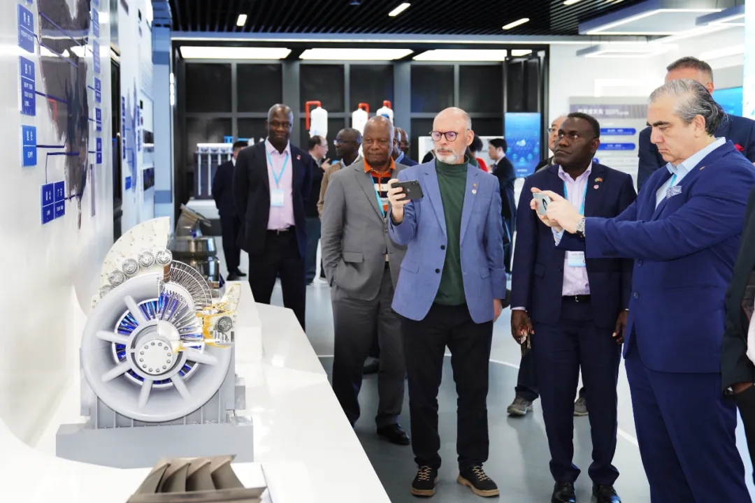 外賓們一行參觀了東方電氣科技展示廳,深入了解東方電氣集團(tuán)“六電并舉、六業(yè)協(xié)同”的產(chǎn)業(yè)格局和積極共建“一帶一路”的實(shí)踐與成果。外賓們還參觀了東方電氣氫能公交車、冷鏈車、廂式貨車、重型卡車,并紛紛登車體驗(yàn)。