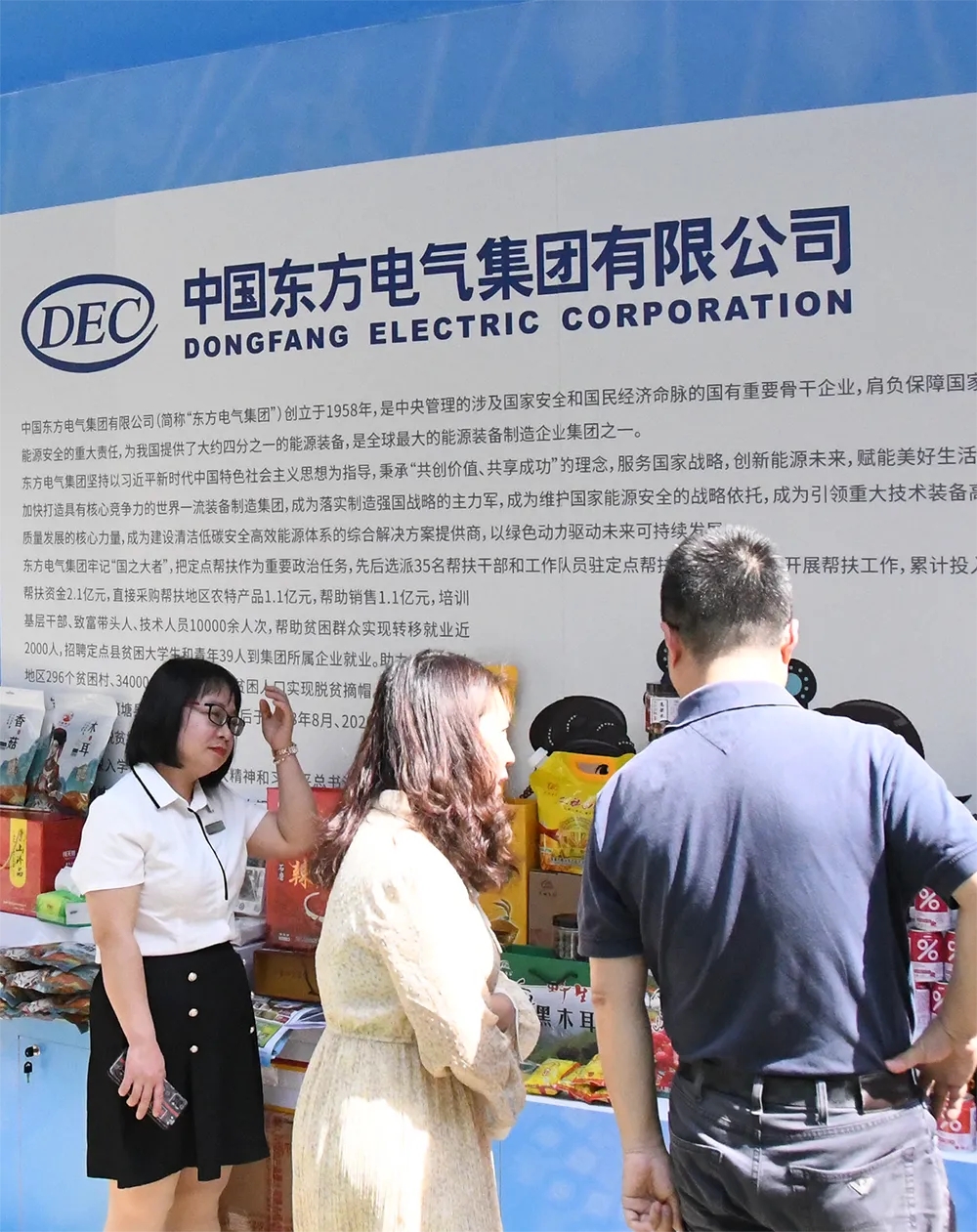 東方電氣集團(tuán)先后選派35名幫扶干部和工作隊員駐定點幫扶縣、鄉(xiāng)、村全職開展幫扶工作,累計投入幫扶資金2.1億元,直接采購幫扶地區(qū)農(nóng)特產(chǎn)品1.1億元,幫助銷售1.1億元培訓(xùn)基層干部、致富帶頭人、技術(shù)人員10000余人次,幫助貧困群眾實現(xiàn)轉(zhuǎn)移就業(yè)近2000人。助力定點幫扶地區(qū)296個貧困村、34000余戶、14余萬名貧困人口實現(xiàn)脫貧摘帽。定點幫扶的山西省吉縣、四川省壤塘縣、四川省昭覺縣先后于2018年8月、2020年2月、2020年11月高質(zhì)量實現(xiàn)脫貧摘帽。