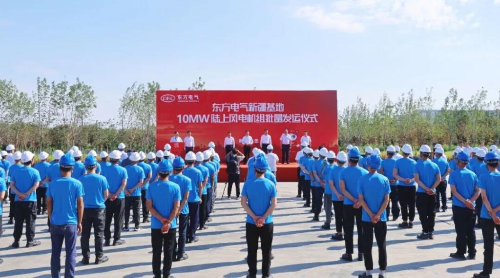 6月24日,東方電氣新疆新能源高端裝備制造基地(簡稱“東方電氣新疆基地”)舉行10兆瓦陸上風(fēng)電機(jī)組批量發(fā)運儀式。東方電氣集團(tuán)黨組書記、董事長俞培根出席儀式并講話。新疆昌吉州人大常委會黨組成員、木壘縣委書記張輝,木壘縣委副書記、縣長哈比勒貝克出席儀式。 東方電氣新疆基地是以“立足新疆、輻射西北、走向中亞”為目標(biāo),投資構(gòu)建以風(fēng)能裝備為核心的新能源高端裝備制造基地,具備年產(chǎn)300萬千瓦大型風(fēng)電主機(jī)及葉片的能力,本次批量發(fā)運的機(jī)組是充分適應(yīng)“沙戈荒”大基地環(huán)境的又一主力機(jī)型,標(biāo)志著東方電氣陸上風(fēng)電技術(shù)及交付能力再上新臺階。