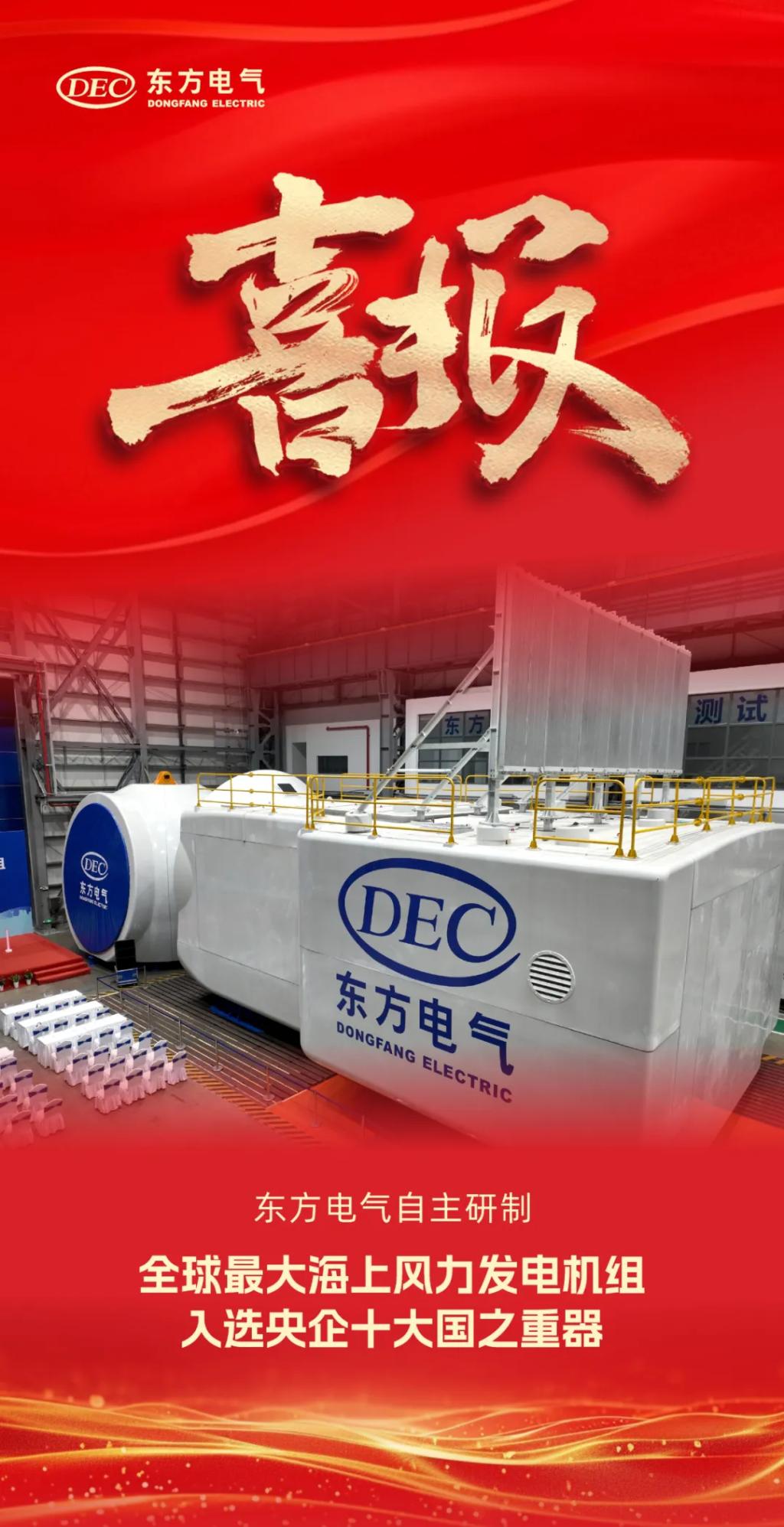 1月1日,國(guó)務(wù)院國(guó)資委新聞中心正式發(fā)布2024年度央企十大國(guó)之重器,由東方電氣研制的“全球最大海上風(fēng)力發(fā)電機(jī)組”成功入選。繼“全新一代18兆瓦海上直驅(qū)風(fēng)電機(jī)組”后,東方電氣海上風(fēng)電產(chǎn)品再次入選央企十大國(guó)之重器。