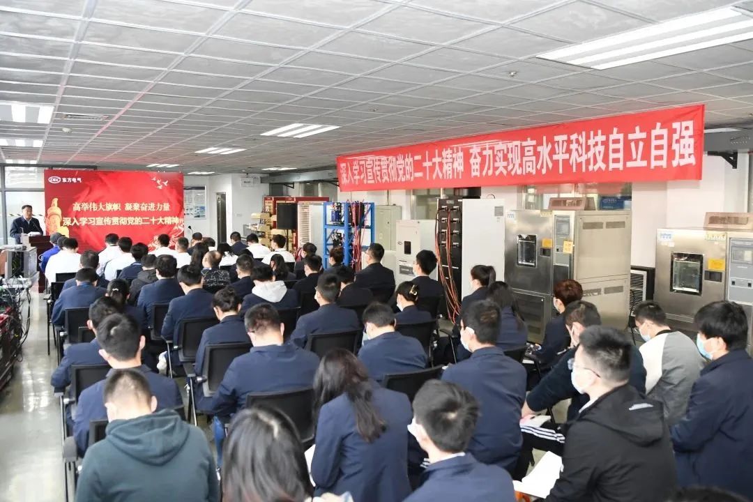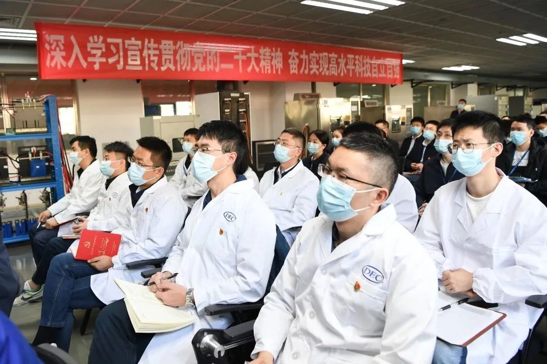 本網(wǎng)訊 為引導(dǎo)全集團(tuán)廣大干部職工切實把思想和行動統(tǒng)一到黨的二十大精神上來,根據(jù)東方電氣集團(tuán)黨組統(tǒng)一部署,11月22日,集團(tuán)公司“高舉偉大旗幟 凝聚奮進(jìn)力量”黨的二十大精神宣講隊首場宣講報告會在東方研究院新能源電池測試實驗室舉行,用“行走的課堂”講述“我們身邊”拼搏奮進(jìn)爭先的鮮活故事,激勵科研工作者以實干搶抓創(chuàng)新先機,為加快實現(xiàn)高水平科技自立自強貢獻(xiàn)“東方”力量。